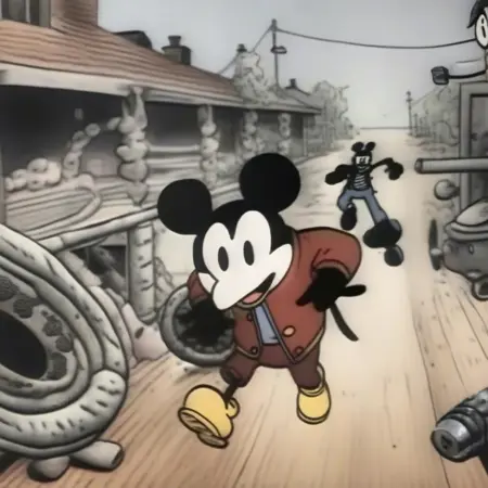 Mickey-1928 可生成米奇、米妮的图像,以及在较小程度上生成皮特的图像(使用提示词 PeteLegPete)。