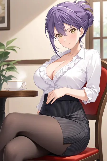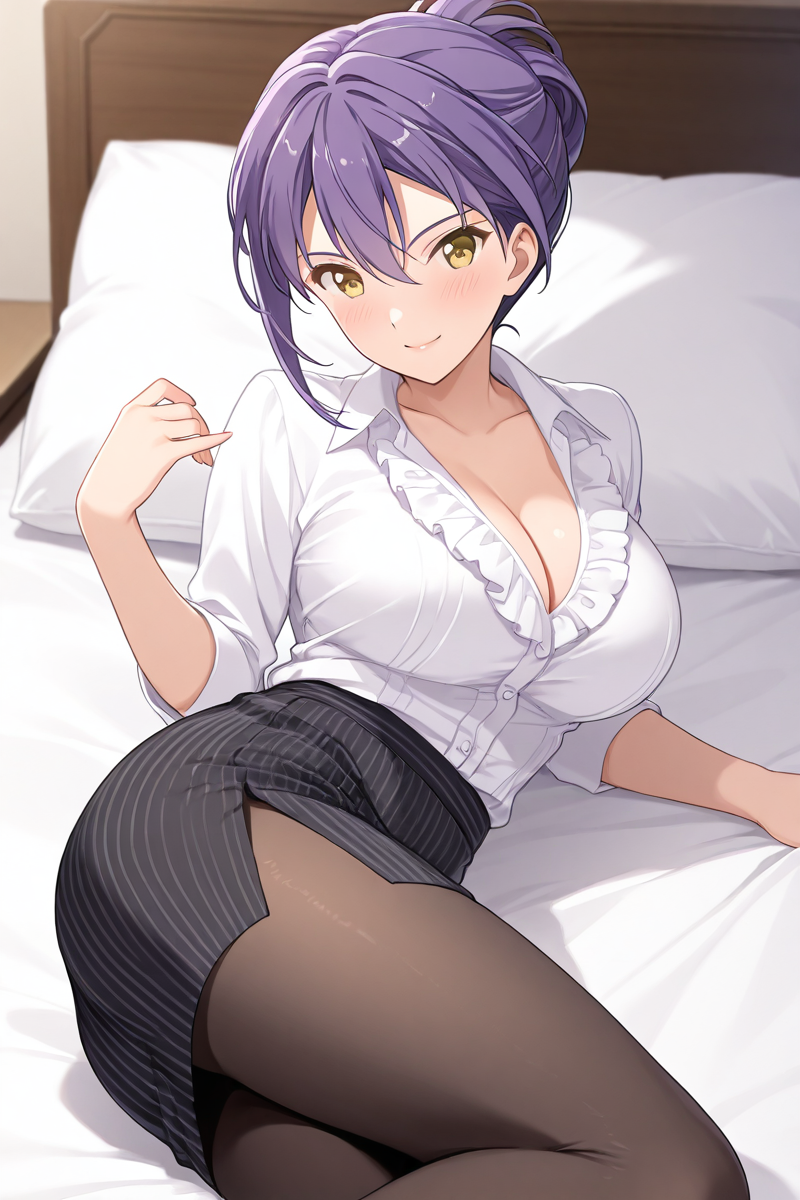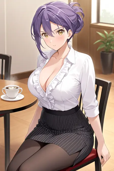 "Ibuki Natsume is a stunning and highly talented woman with a perfect figure of 90-55-87. She works as a highly competent and trusted manager, overseeing the careers of idols. Previously, Ibuki was a popular and renowned idol herself, but now she is more focused on developing the careers of young idols under her guidance. In addition, Ibuki also serves as a reliable mentor to child idols. Despite this, Ibuki occasionally enjoys sharing stories and venting about her own problems to the main character. Unlike other heroines, her romantic relationship with the protagonist is built on genuine affection."