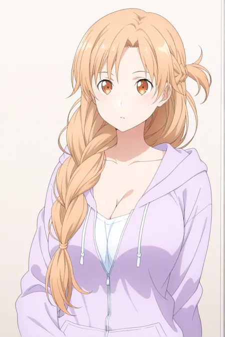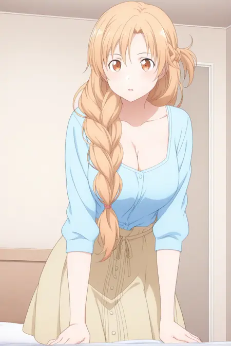 asunaos, woman, 1girl, casual clothes, long braid, hair over shoulder,