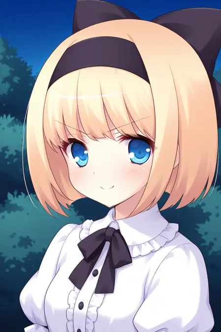 blue hairband,hair bow,blue bow黒リボン (no headwear)