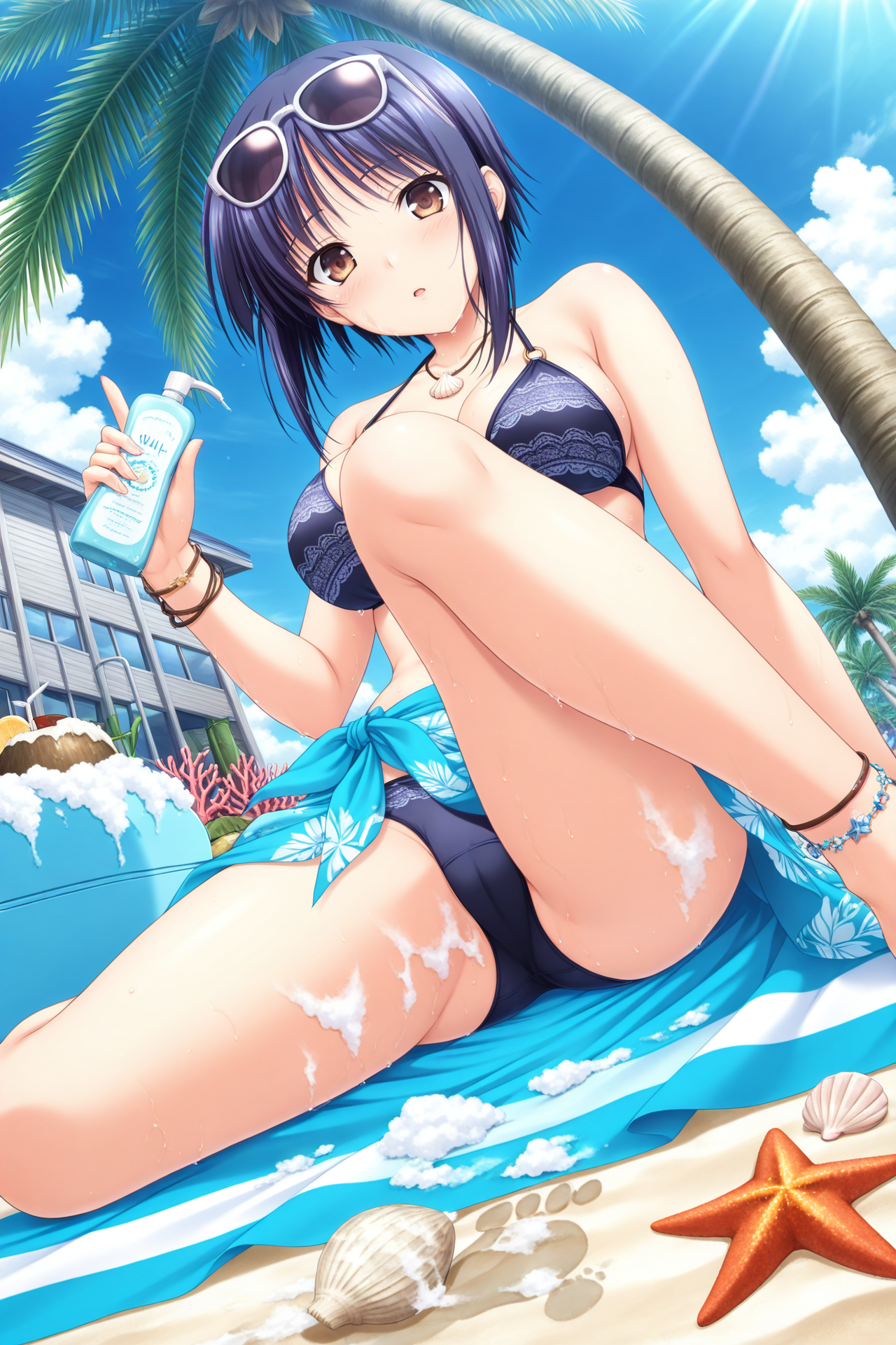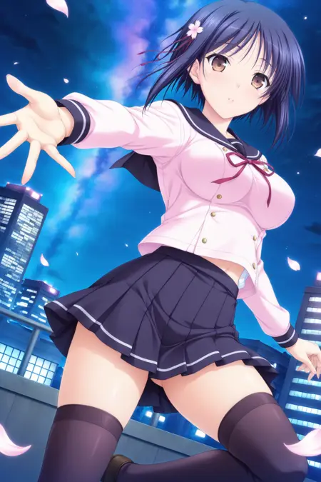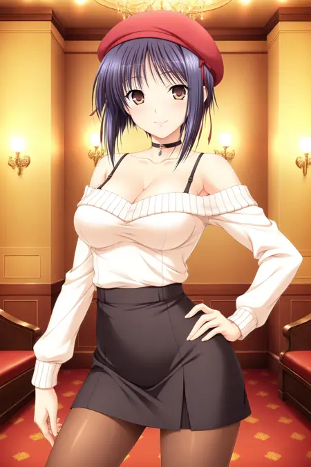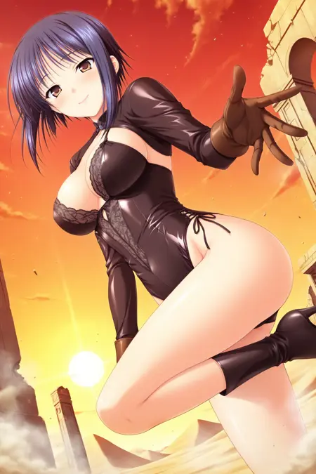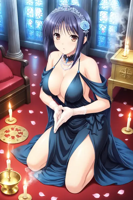 Fujikura Yuu,blue hair,brown eyes,short hair,large breasts,
