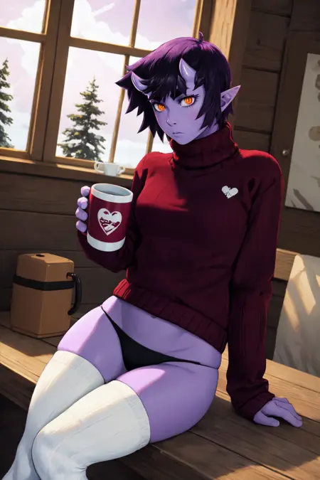 경고: 애니메이션 스타일 모델에서 가장 잘 작동합니다. 다른 애니메이션 스타일이 아닌 모델에서 일관되게 사용하려면, 피부가 흐릿해지는 것을 방지하기 위해 "Purple skin, black hair"를 추가하세요.