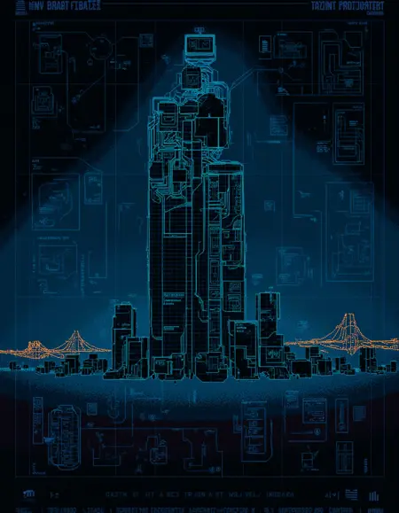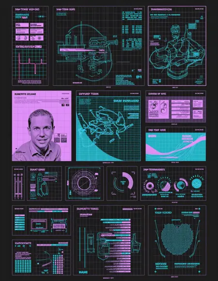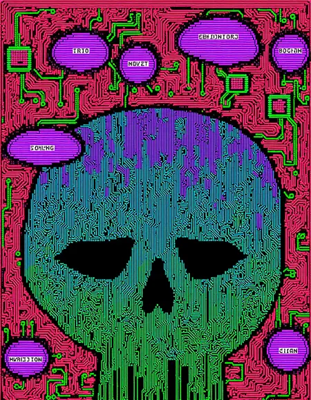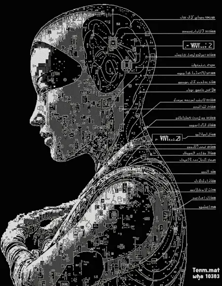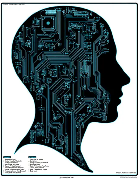 ishin_termart,超精细的印刷电路板轨迹构成的人头蓝图海报,单色带微妙青色光晕,技术插图,8k,清晰的线条,简洁的背景文字标签,干净的留白