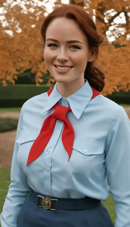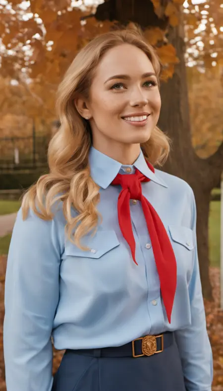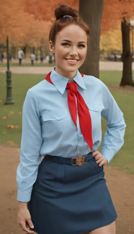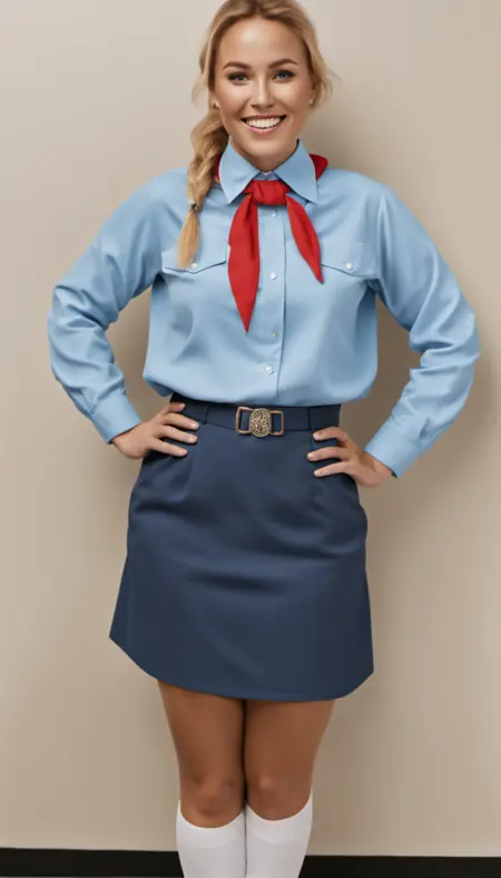 这是一种20世纪70至80年代前捷克斯洛伐克的仪式性校服(非日常穿着),被称为“少先队制服”(pionýrský kroj),由“少先队组织SSM”(几乎所有的在校儿童)成员穿着。这是试图将所有儿童与青年组织统一为一个与教育体系紧密关联的组织,并使其受执政共产党控制,因为当时一切都如此。幸运的是,它从未实现其目标。这种“自愿强制性”(当时存在官方的“民主”,但任何对执政党的异议都会以非官方方式受到惩罚)的成员身份,使该组织成为与整个社会同样精神分裂的正式机构——公开庆祝执政党,私下却言辞相反。尤其当许多俱乐部领导人来自被禁的童子军或类似组织时,他们耐心而勇敢地在儿童中传播自由思想(我在夏令营里学到了许多反共笑话),这也促成了执政共产党最终的垮台。