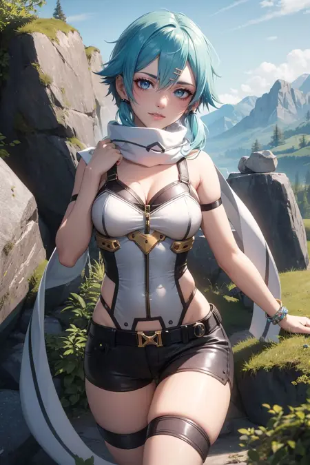 sinon, 水蓝色头发, 发饰, 短裤, 围巾