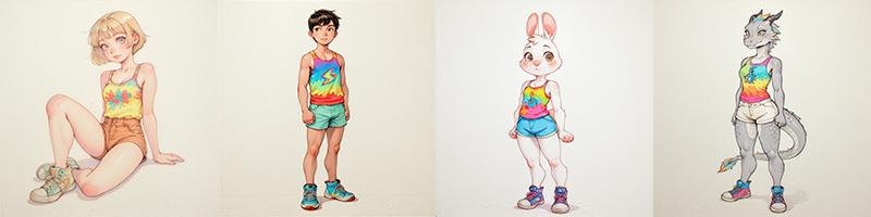 这些模型主要聚焦于更可爱、更鲜艳的风格。若想获得稍许 Q 版角色,通常只需在提示中添加“cute”标签即可。v5 在无需额外提示的情况下更倾向于呈现 Q 版风格。