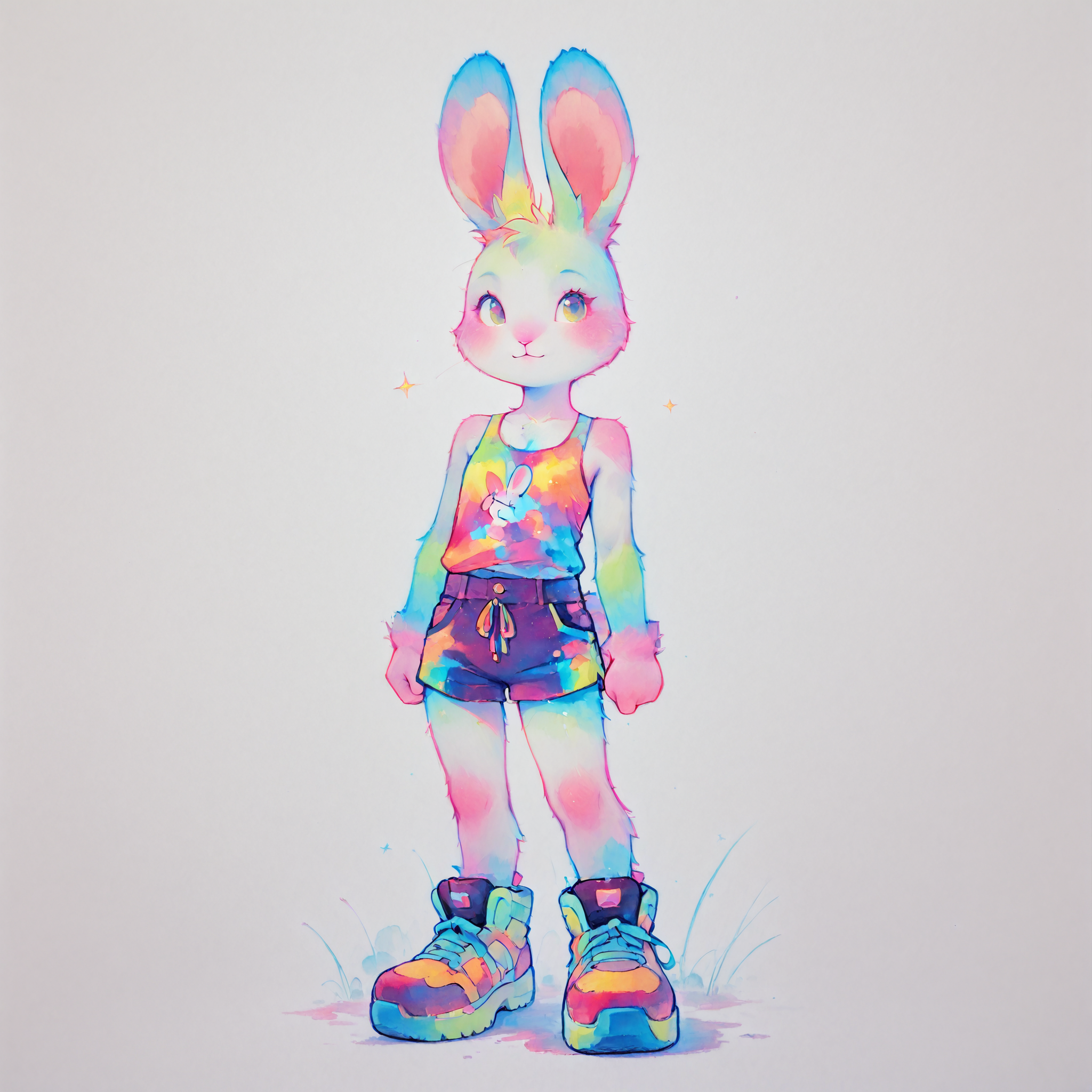 v3はカラフルでレインボーセンターのスタイルで、柔らかい絵画的なタッチです。プロンプトに特に指定しなくても、カラフルな背景が追加されやすいです。