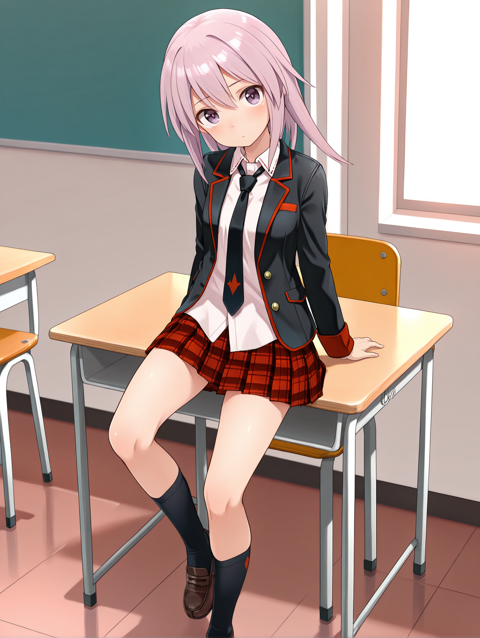 衣装補助プロンプト・black jacket,open jacket,black necktie,untucked_shirt,plaid skirt,black socks,brown loafer,