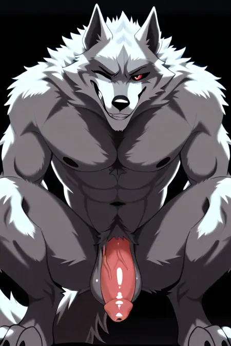 death, Solo, Male, furry, wolf, red sclera, black pupils, gray fur, tail, brown bandages on feet and forearms, black cape / black poncho, dark brown pants, sickles