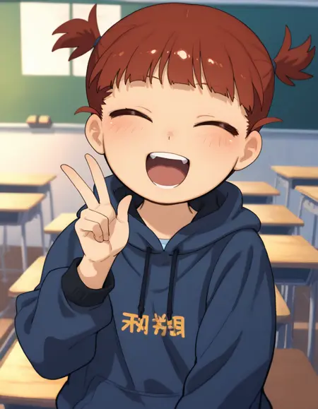 Mikko: mikkodef, 빨간 머리, 짧은 트윈테일, 주름치마, 트랙 자켓, 미니스커트, 빨간 눈, keizoku 군복, 머리끈, 단발머리, 래글란 소매, 곧은 앞머리, 지퍼, 머리 사이로 보이는 눈썹