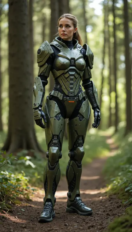 このバージョンはアーマーのスペクトルを広げます:ハイテクで魅惑的なエクソ・ランジェリーから、タクティカルなステルス作戦用スキントップ、そして完璧な仕上げを施した戦場対応の重装甲レッグまで——まったくメカやロボットの領域に踏み込むことなく。女性の存在感は明確に保たれ、人間の解剖学に基づき、機能的な関節と高品質な表面ディテールを持つセグメント化・モジュラー式のアーマーで包まれています。