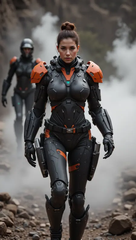 此版本拓宽了装甲的光谱范围:从高科技、诱惑的外骨骼内衣,到战术型隐身作战服,再到全战场-ready 的重型装甲套装,每一件都经过大师级打磨——却始终不踏入机械或机器人领域。她始终保持女性轮廓的鲜明可辨,扎根于真实人体解剖结构,并包裹在模块化、分段式装甲中,具备功能性接合结构与高品质表面细节。