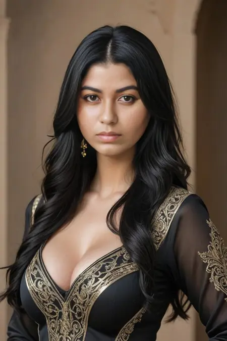 AI生成的美丽现代印度女性,时尚现代,色彩鲜艳,目光自信,柔焦效果,优雅大方,举手投足间充满优雅与从容,兼具力量与温暖。