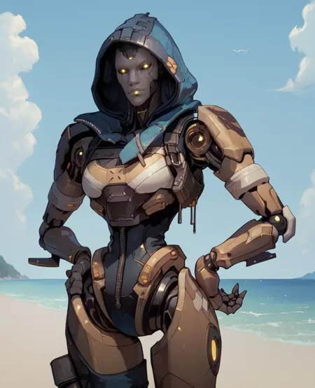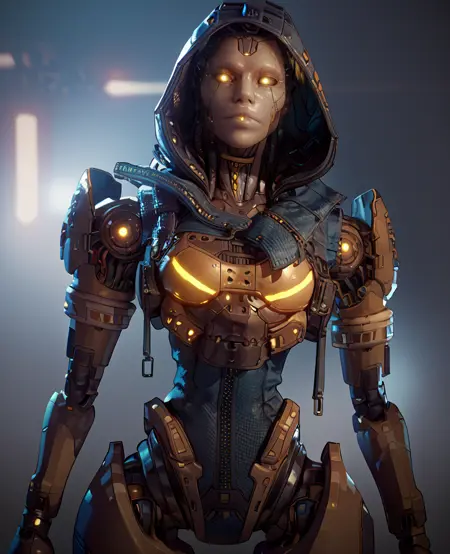 • 실제로 머리카락이 생길 수 있음—후드를 유지하려면 hair를 Neg에 넣거나 프롬프트에 robotic dreads를 넣으세요,