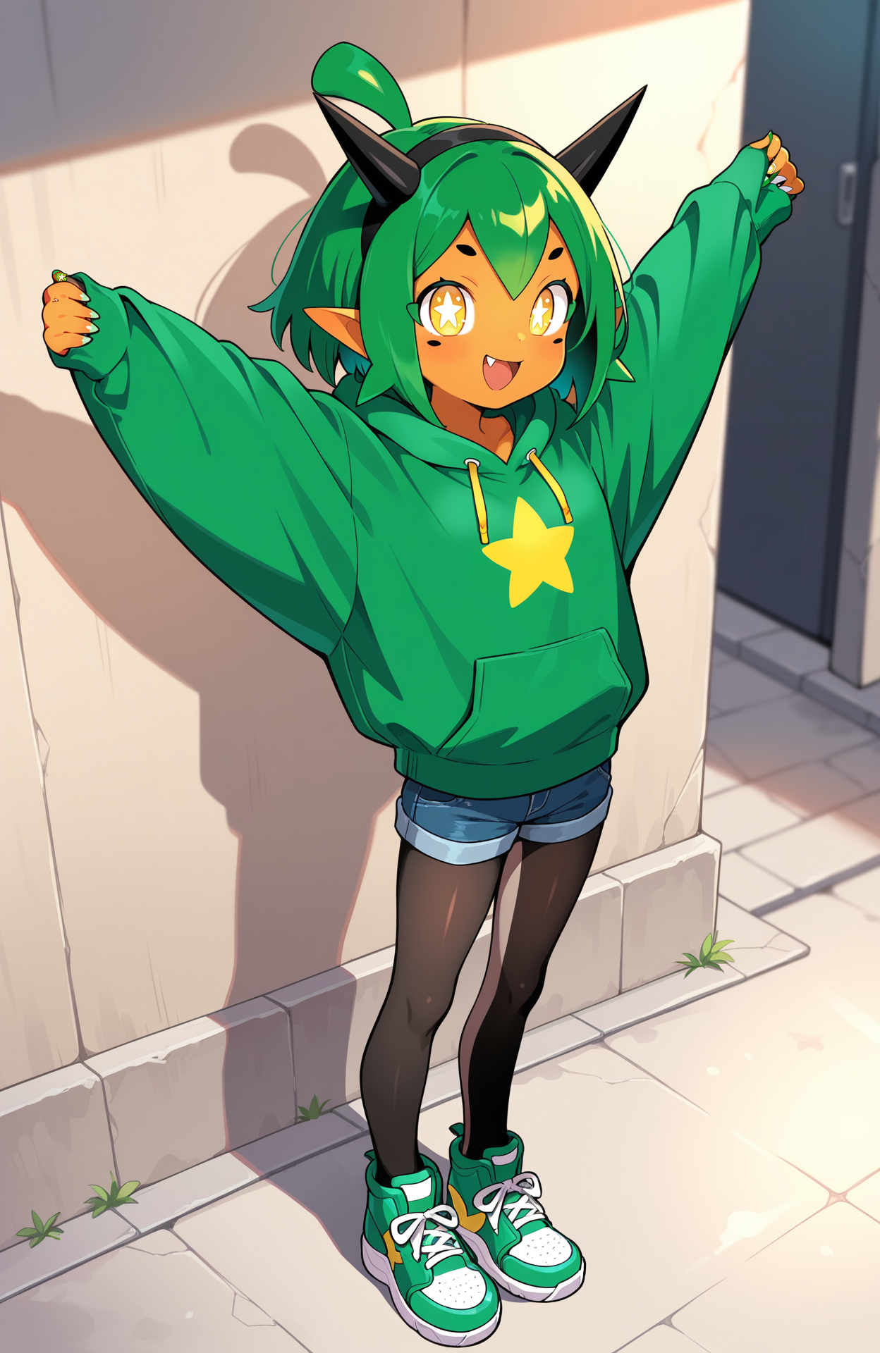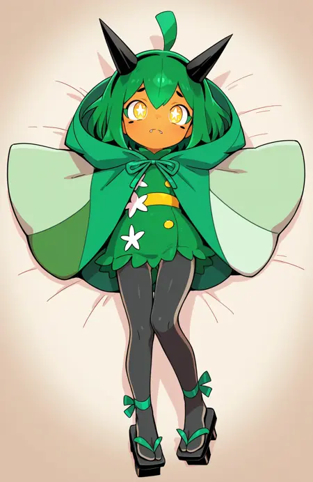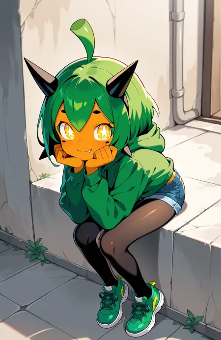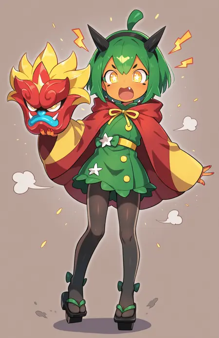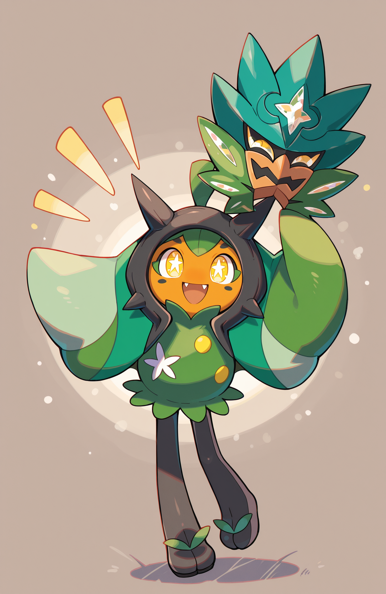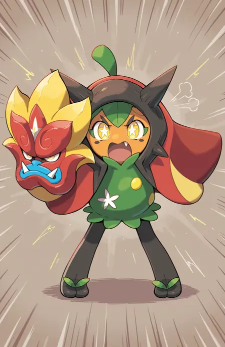 기진카 태그: ogerpon, 검은 뿔, 노란 눈, 별 모양 동공, 밝은 동공, 부채