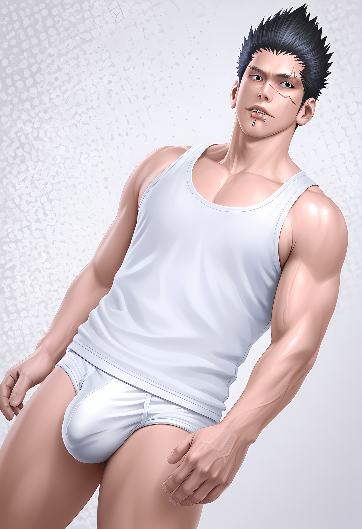 『バーチャファイター』の五黄日神。トリガーは[vf_goh]です。彼の[顔の傷痕]は比較的安定して右側に現れますが、[唇のピアス]と[眉のピアス]は時々うまく出ないことがあります。特に眉のピアスは傷痕と混ざってしまうこともあります。