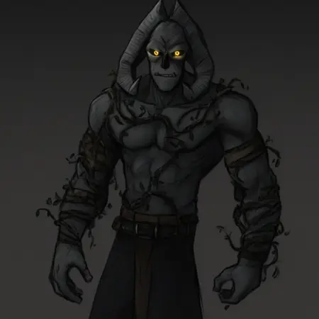 | 训练词汇 | thin head is skull-like in shape已复制! sunken yellow eyes with black sclera已复制! Two large horns sprout from the back of it's head, curving around it已复制! fangs and teeth, vines from his body and feet, black nose, and blue gems inside his cracks from his chest已复制! |