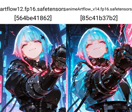 Anime ArtFlowは、アニメスタイルの画像を生成するためのモデルです。詳細で鮮やかなキャラクターアートをお楽しみください。