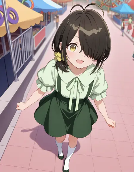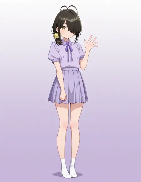 <lora:kotono_shiunji-shiunji_ke_no_kodomotachi_s1-v3-ixl-anime-soralz:1>, kotono shiunji (shiunji-ke no kodomotachi), short hair, antenna hair, brown hair, hair over one eye, side ponytail, hair scrunchie, yellow eyes