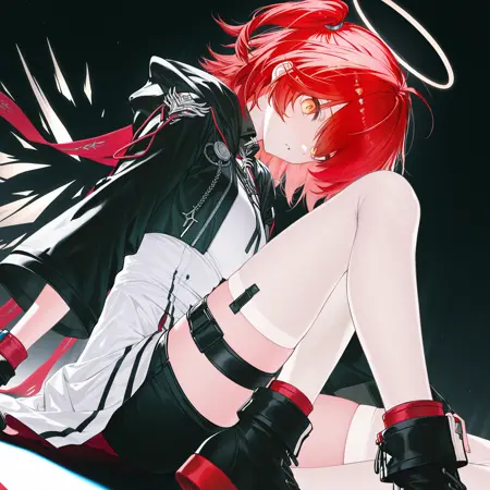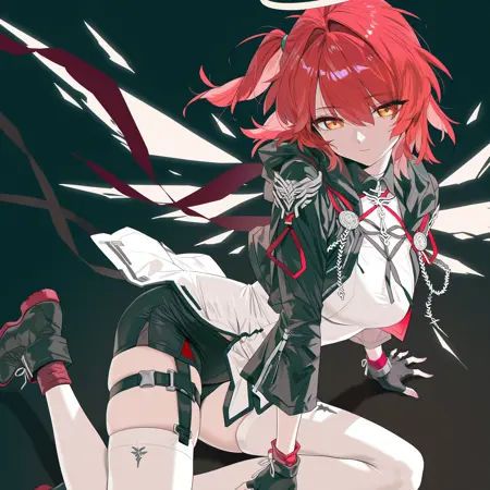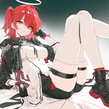 触发词:exusiai the new covenant \(arknights\),red hair,red eyes,one side up,