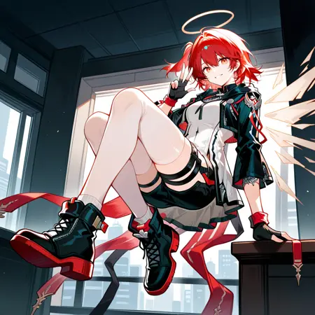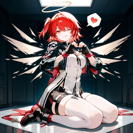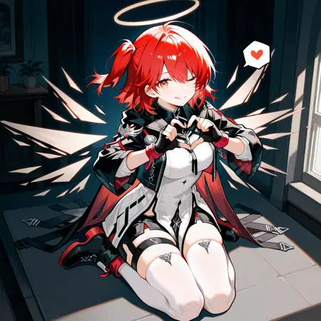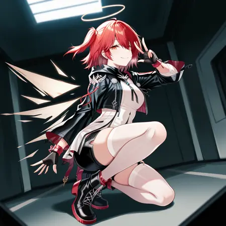 Trigger word:exusiai the new covenant \(arknights\),red hair,red eyes,one side up,