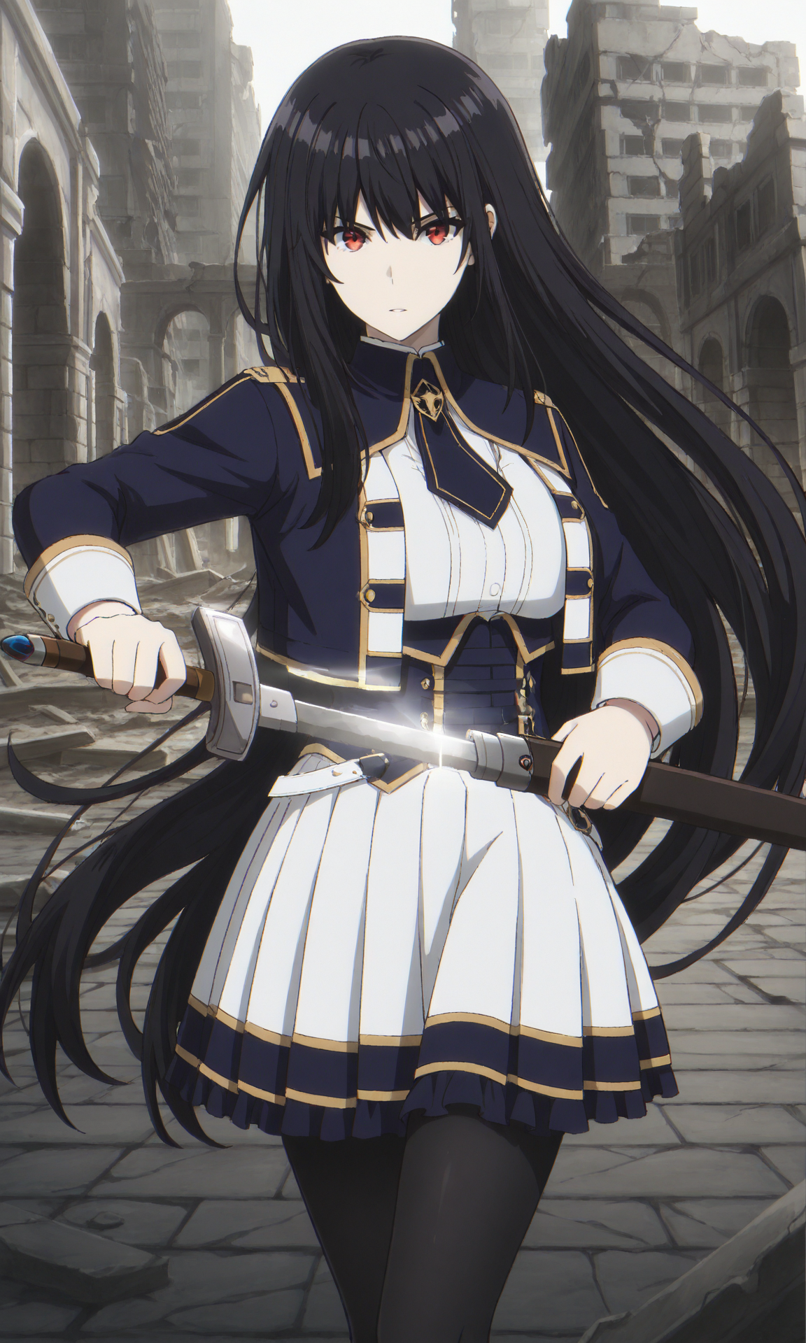 midgar academy school uniform, military uniform, black pantyhose, black knee boots,