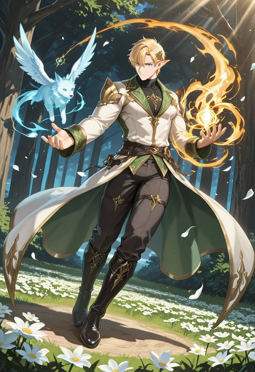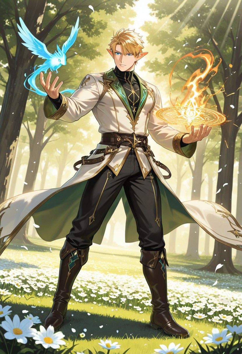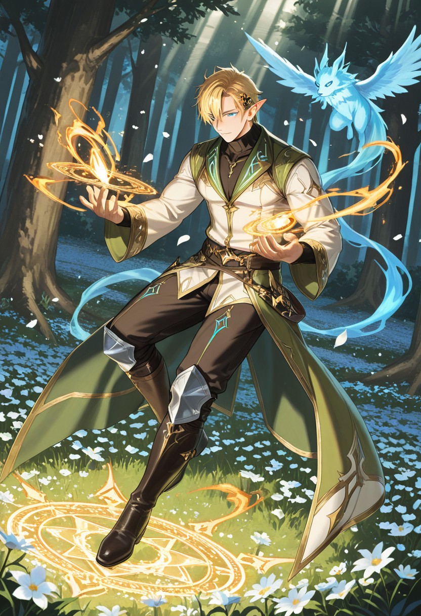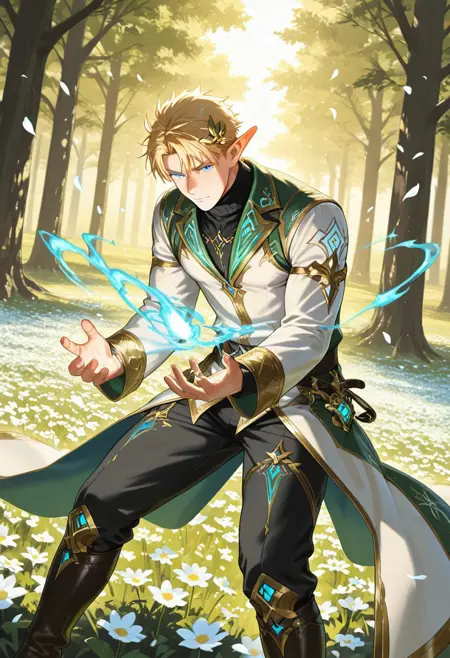 1boy, elf, blonde, middle hair, blue eyes, gold hair ornament, hair accessory,