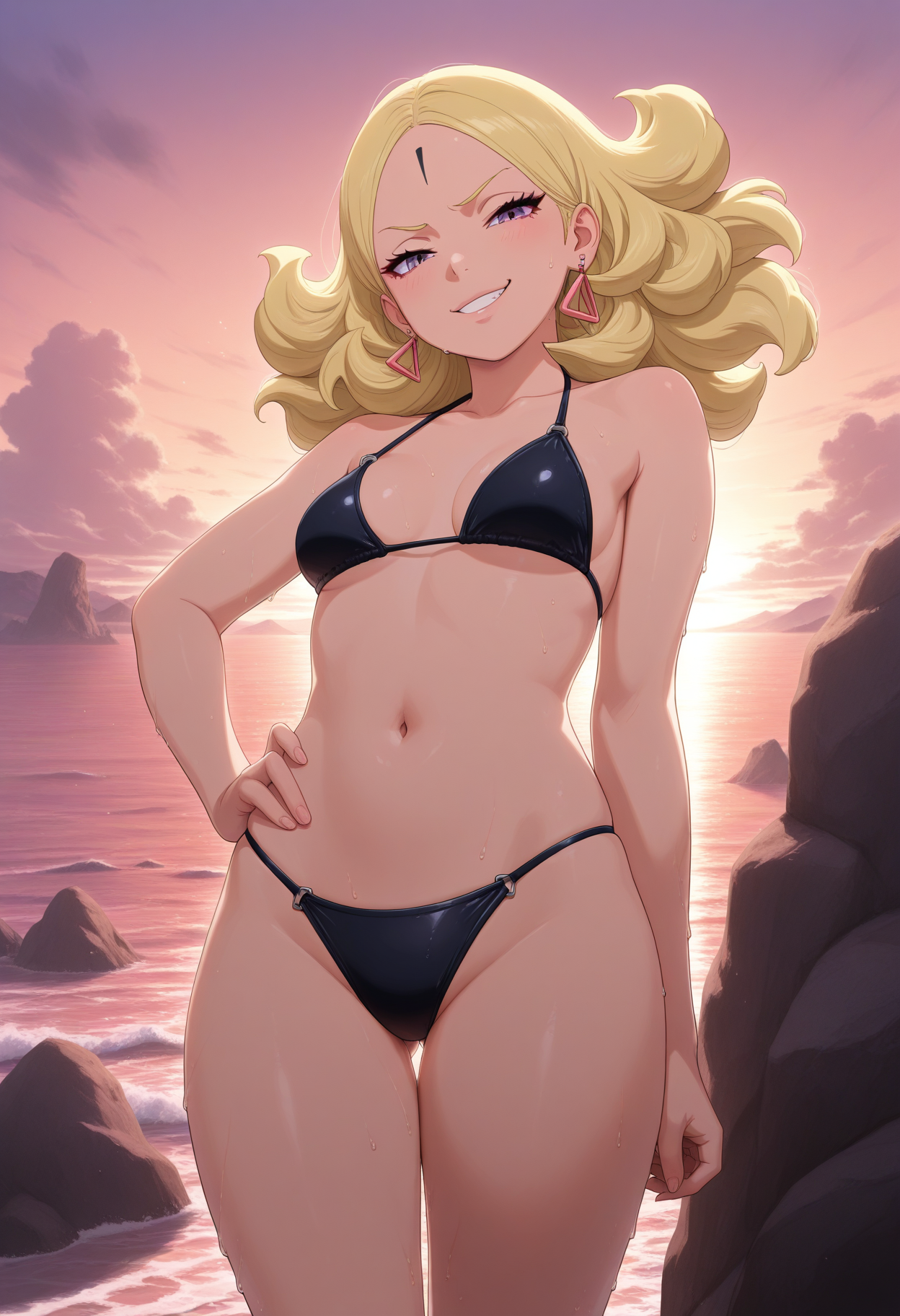 delta, 1girl, 紫の目, 金色の髪, 長い髪, ピアス,