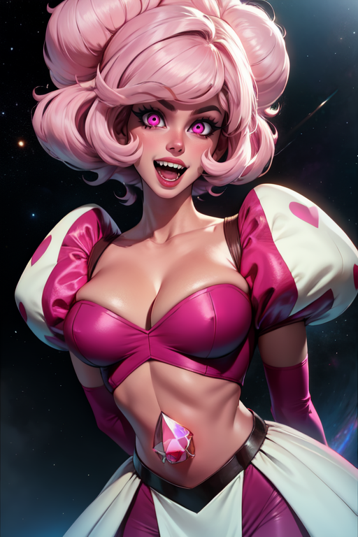 pnkdamond, pink hair, pink eyes, pink skin, big hair, - stomach gem,