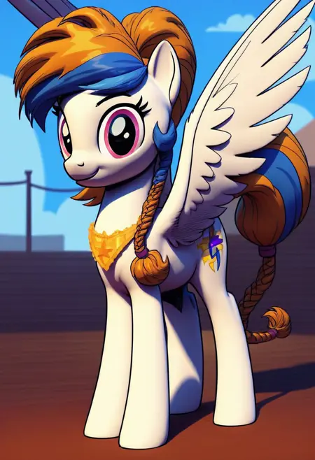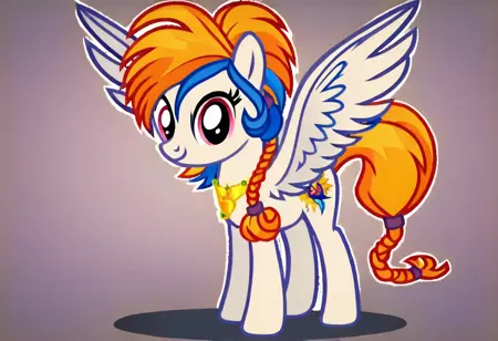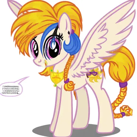 characterwingscelestiapink eyesfeathered wingstwo-toned hairbanana yellow hair, banana yellow braided hair, pink eyes, cornflower blue streak in left ear, pegasus, papaya whip fur, a daffodil shapeshifter charm, beige wings, papaya whip body, feathered wings, two-toned hair, one-toned tail, banana yellow tail, braided tailbraided tailbanana yellow tailone-toned tailpapaya whip bodybeige wingsa daffodil shapeshifter charmpapaya whip furcornflower blue streak in left earbanana yellow braided hairbanana yellow hairgolden featherpegaso