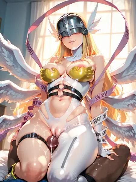 ilangewomon, digimon \(生物\), 1girl, 胸, 1boy, 異性愛, 陰茎, 陰毛, 性交, 天使の翼, サンサー, 金髪, 乳首, ヘルメット, 肌の黒い男性, 大きな胸, 翼, 精液, 陰部, 目を覆う, 陰部への精液, 黒肌, 男性の陰毛, 太ももストラップ, 異種間, 陰部, 女性の陰毛, へそ, シャル, 長い髪, へそ開き, 複数の翼, 翼付きヘルメット, 羽根の翼, 頭部の翼, 精巣, 笑顔, 胸を露出, 精液あふれ, Oリング, ハゴロモ, 天使, 衣服の切り抜き<lora:illustrious- Angewomon-1024X1536:1>,