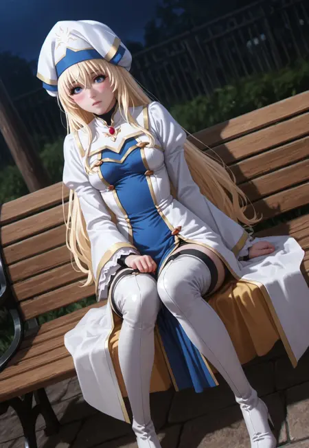 Prompt activator : 1girl, priestess, (/Goblin Slayer)/,(ultra HD quality details), blonde hair, blue eyes, long hair, hair between eyes