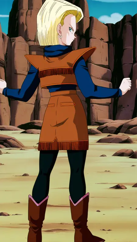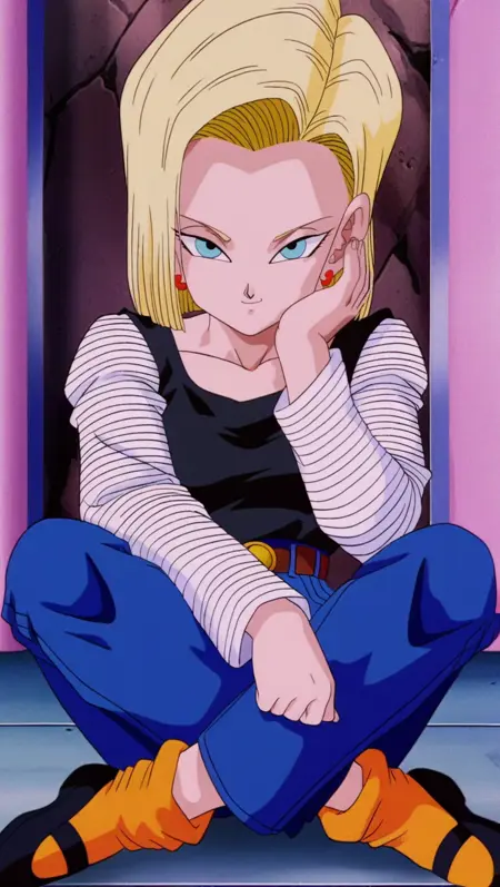 late cell saga, black vest, white undershirt, orange socks, black footwear, jewelry, earrings, gloves, black gloves, belt, denim, jeans, bead necklace, pearl necklace
