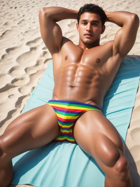 In the Lora I often use the words, “rainbow pride speedo,” to conjure them up in the prompt.