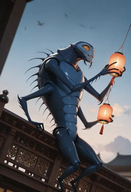 francoeur_mip, arthropod, flea, insect, solo, 1boy, no humans, (4 arms:1.2), monster, male, colored skin, teeth