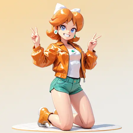 建议标签:短裤、白色背心、短裤、发带、橙色夹克