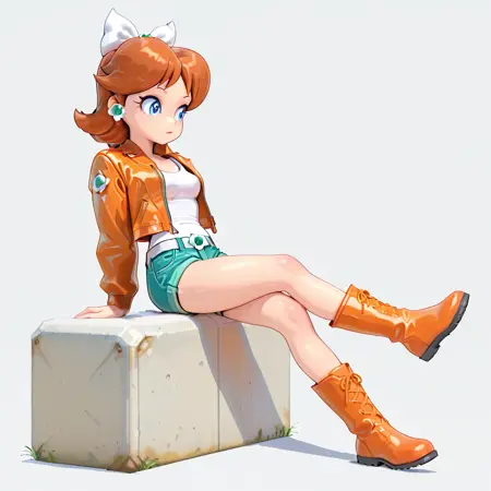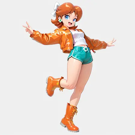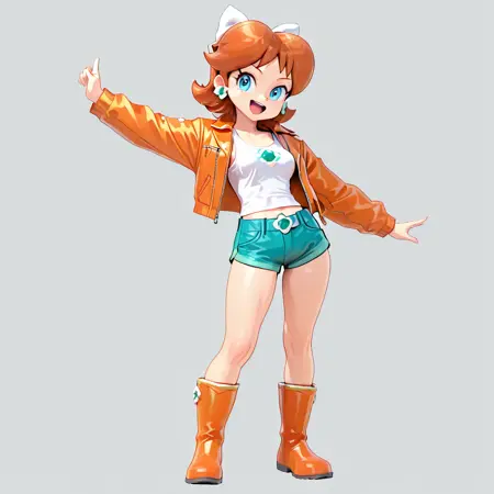 suggested tags: shorts, white tank top, shorts, hair bow, orange jacket