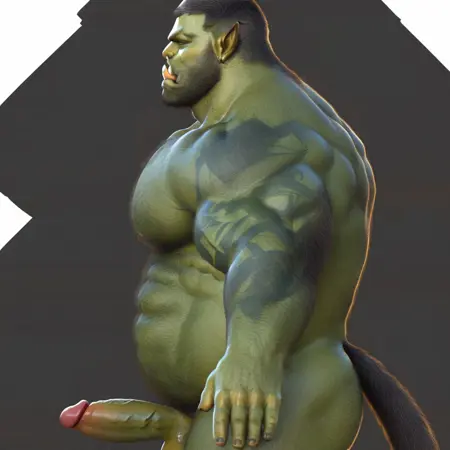 broz, 실사, 송곳니, 가슴 털, 다리 털, 팔 털, 배꼽 털, 귀걸이, 음부 털, 꼬리, 뾰족한 귀, 오어크, 퓨리, 인간 없음,