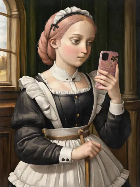 Trained with female portrait of Raffaello Sanzio da Urbino, great painter of the High Renaissance.