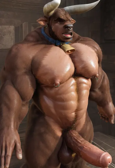 minoorc, 写实, 乳头, 胸毛, 短发, 鼻环, 男性阴毛, 脐毛, 面部毛发, 多毛, 阴毛, 牛仔, 牛角, 牛耳, 毛绒