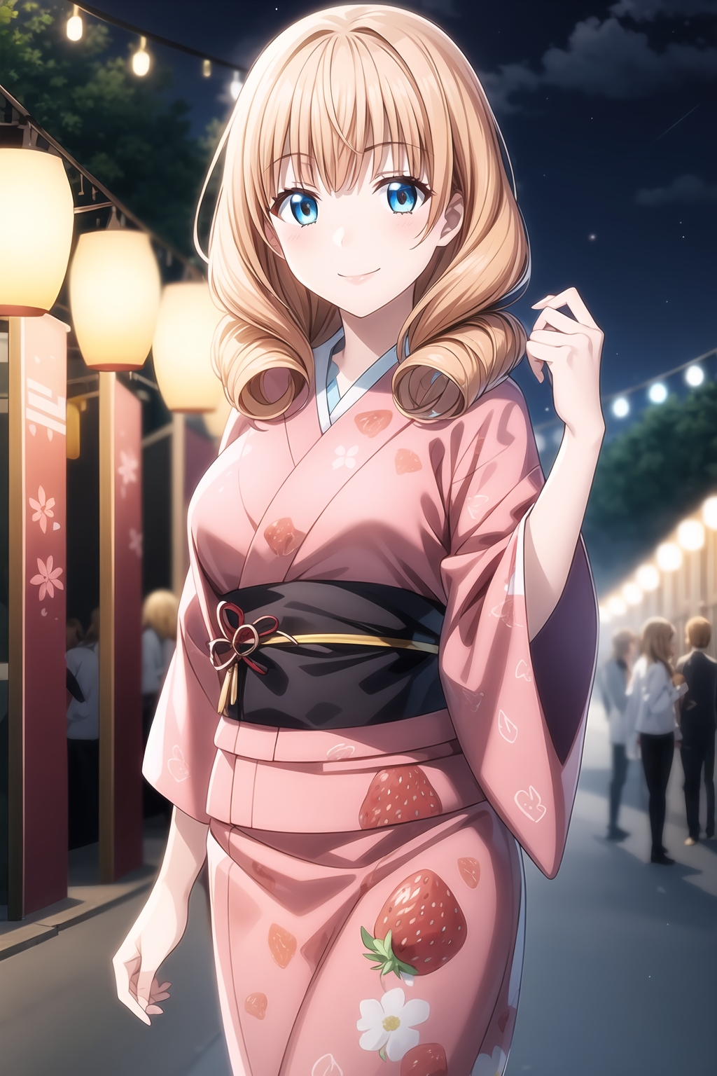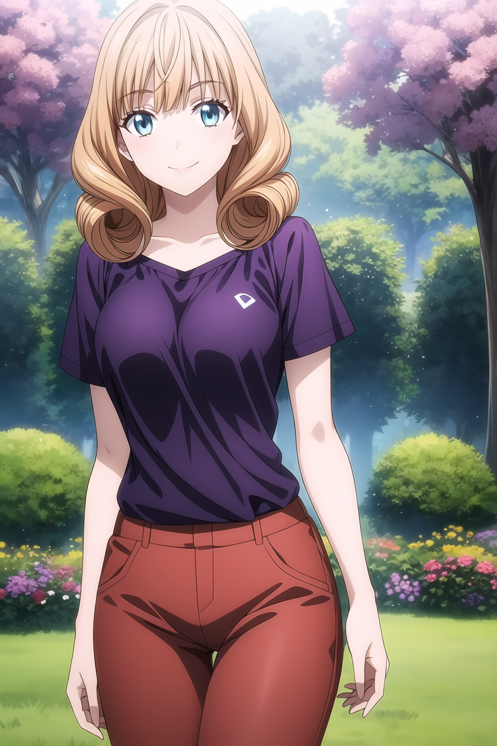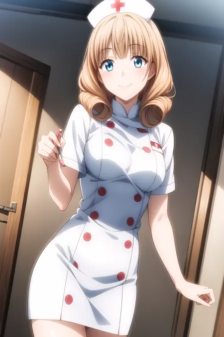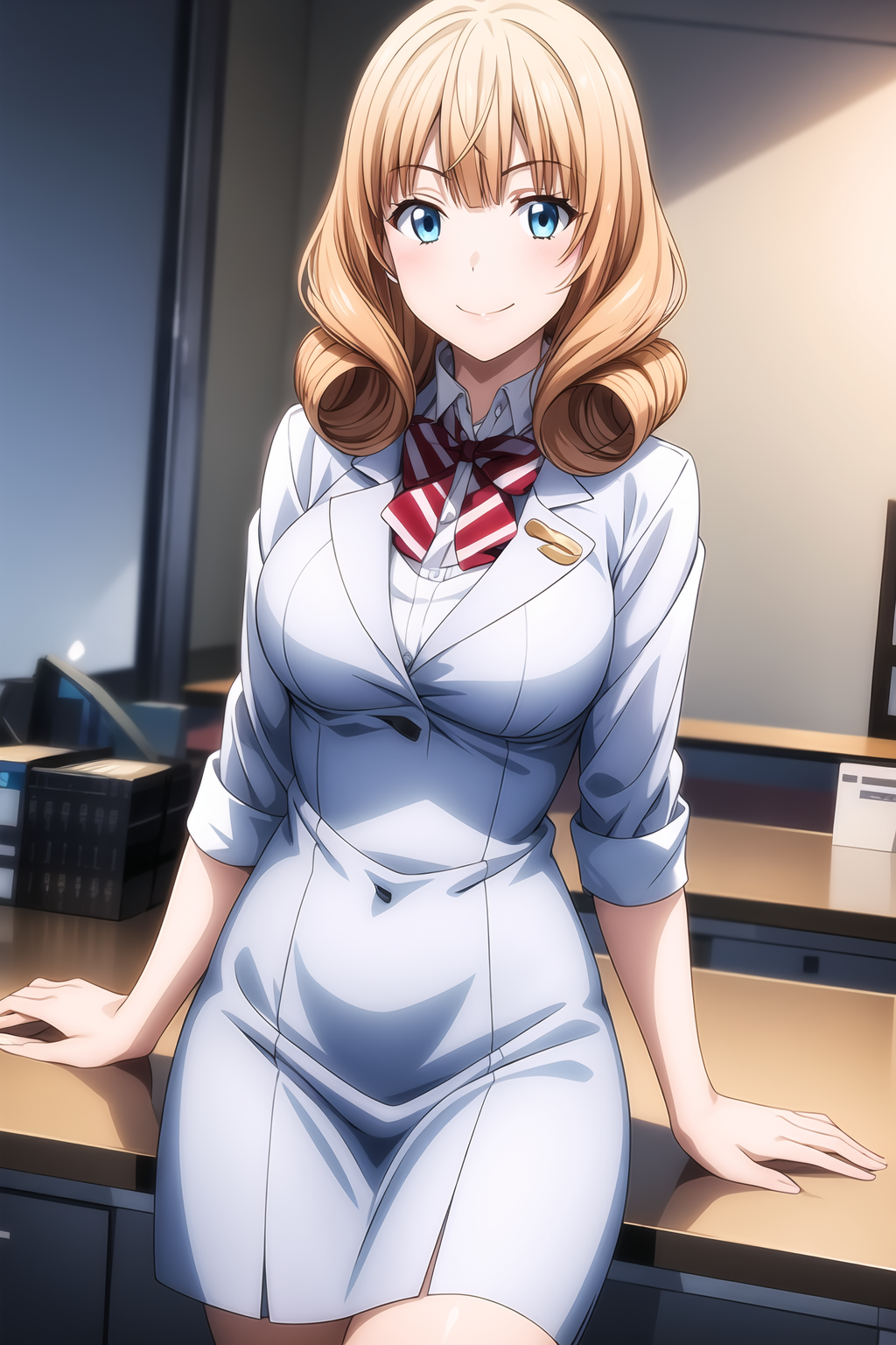 aquamarine-blue eyes, strawberry blonde hair, twin drill hair, long hair