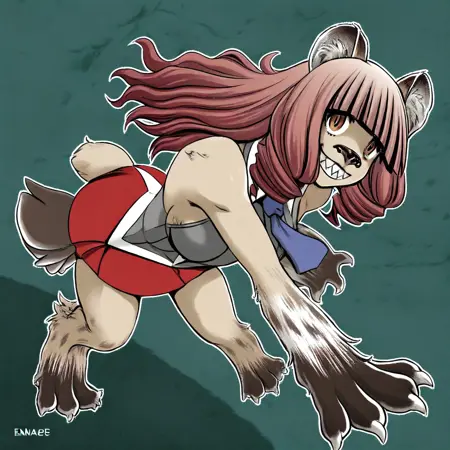 모든 하이에나 소녀가 나쁜 것은 아닙니다! 예를 들어, 에나는 다른 여성들을 지배하는 것을 즐기는 레즈비언 연쇄 성범죄자입니다… 음, 잘못된 표현이네요. 그녀는 또한 교활하고 사디즘적입니다! 아, 다시 잘못 말했네요.