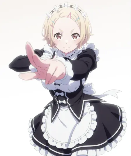 短髪、金髪、髪飾り、茶色の目、ヘアクリップ、V字型の眉,