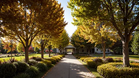秋の風景:autumn、autumn leaf tree と他の語を組み合わせると、秋の葉の樹種とトーンが現れます。