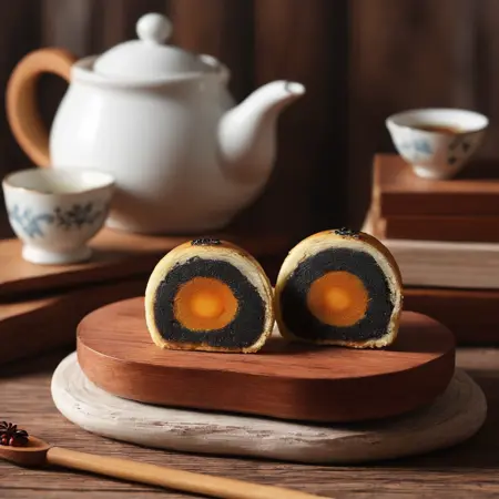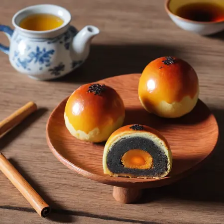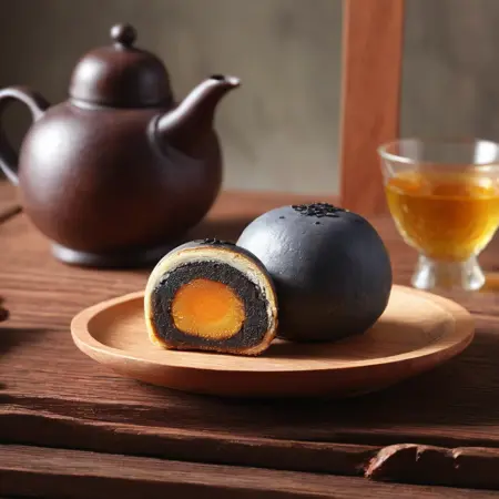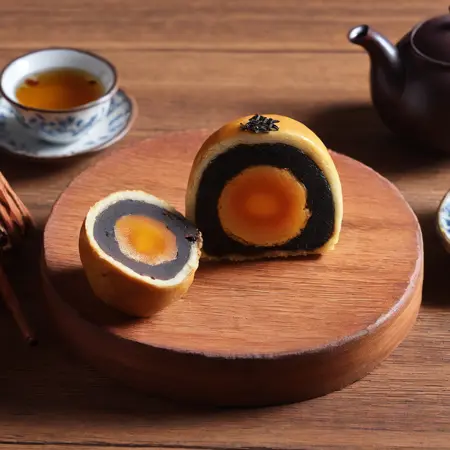 Egg yolk pastry is a traditional Taiwanese pastry that is typically eaten during the Mid-Autumn Festival. It is made with a flaky, buttery crust that is filled with a rich, sweet and savory filling of salted egg yolk and red bean paste.