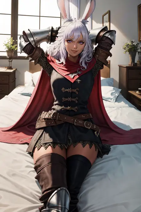 The best bun of FF14, I had to make a lora once I found out there was not one for her. The outfit is not 100% perfect due to variety in data but my aim was for it to be flexible clothing wise which has been a success. I hope you all enjoy.