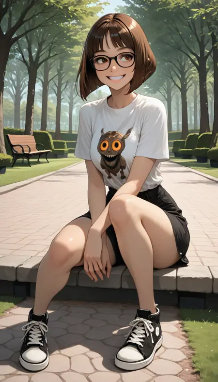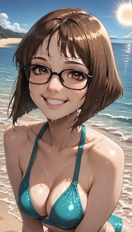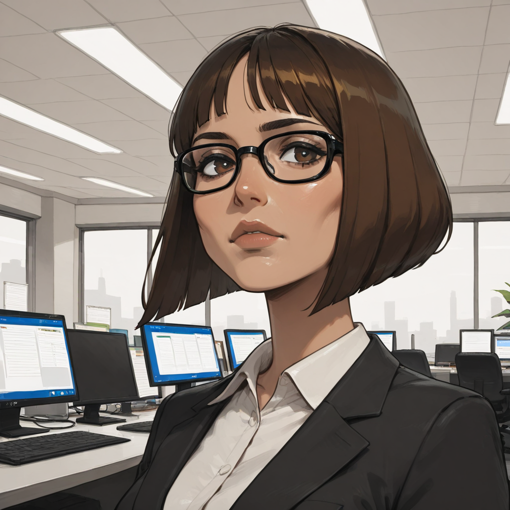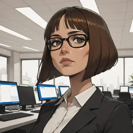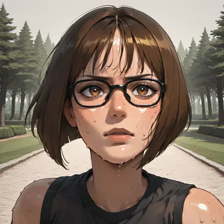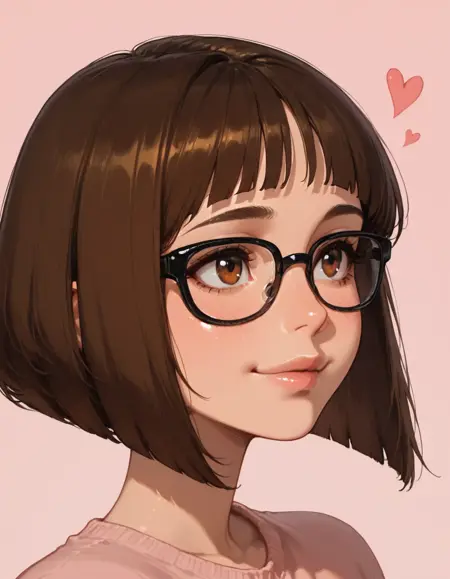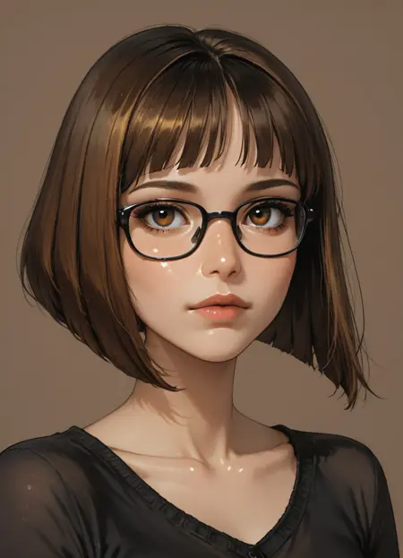 ClaraC, 棕色头发,短波波头,棕色眼睛,黑色镜框眼镜,