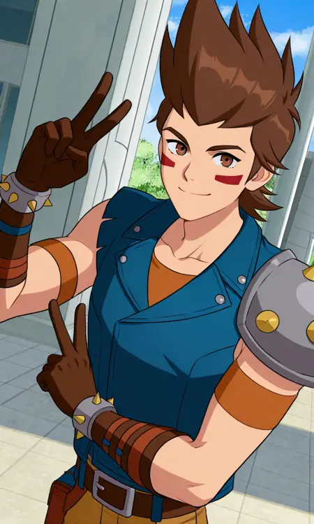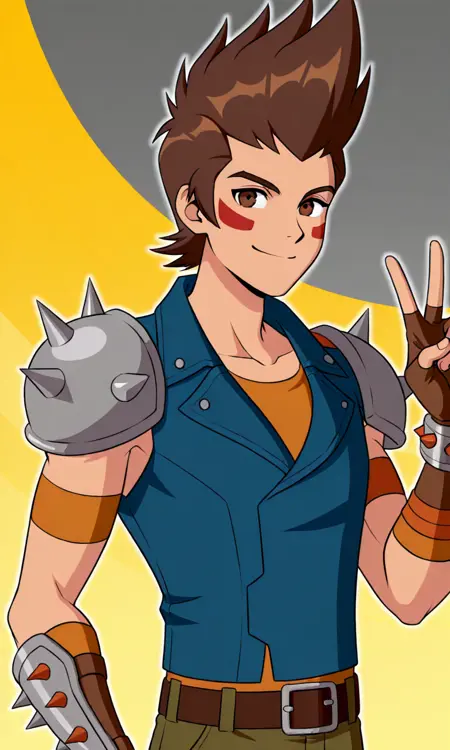 그의 외모는 많은 요소가 복잡하게 얽혀 있어 생성 시 약간 어수선할 수 있지만, 무게 0.8에서 가장 잘 작동한다.