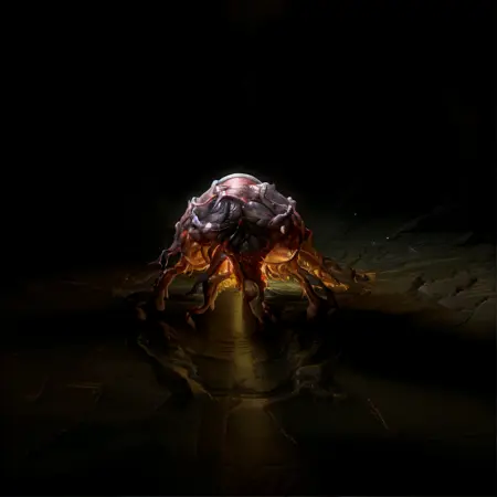 blurry, claws, full body, ganglia, glowing, intellect devourer, legs, muscular, veins