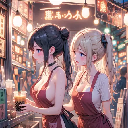 Note: If you don't like "3girls", you can change the number of girls. If you think the signboard lights are too dazzling, please adding "gradient sky, dark clouds, twilight, dusk, dim, day,". (ILXL)